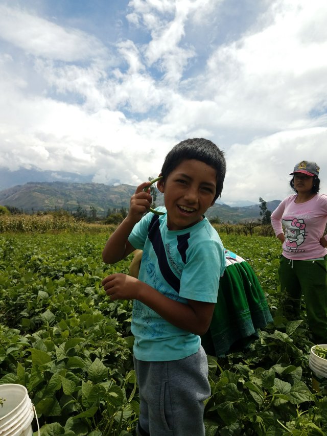 • Harvesting green beans is a family affair. The more hands, the better. In our case, the only person missing was my host-dad. To take his place though, were some members of the extended family. They work year round on the farm, helping to plant and harvest. When my host-mom or grandma go to sell the crops, they get cut into the profit. In total there was about 10 of us. The experience seemed to be gendered also. There were only 2 men, myself and another. The rest were women. Strong, hard working and efficient Andean women. This seems to be the trend for other harvests as well. Except for corn. Corn seems to be a man thing. Probably because of the stereotypes about masculinity and harder, heavier and rougher physical labor. This stereotype manifested in the green bean harvest also. When the buckets were full and ready to be transferred to the sacks, it was always a man who did the lifting. Otherwise, the woman presence was powerful and intimidating.