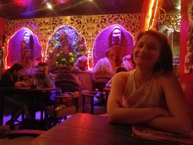 We found a very friggen strange bar on our first night in Bogota. Whit ordered a dirty martini and I got a beer. We could have gotten a tarot card reading but we decided to save our money.
