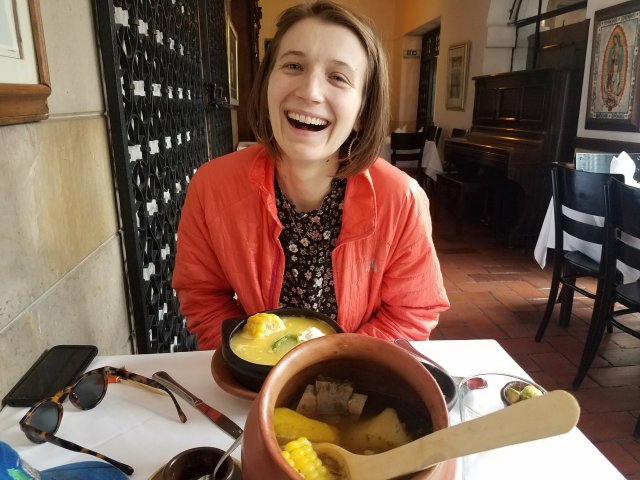 We were recommended a restaurant to try some of the more typical foods of Colombia. Whit ordered this creamy chicken soup thing called ajijaco. I ordered the campesino’s almuerzo which was pretty much a stew with corn, potatoes, sausage and some other meats. Pretty friggen delicious.
