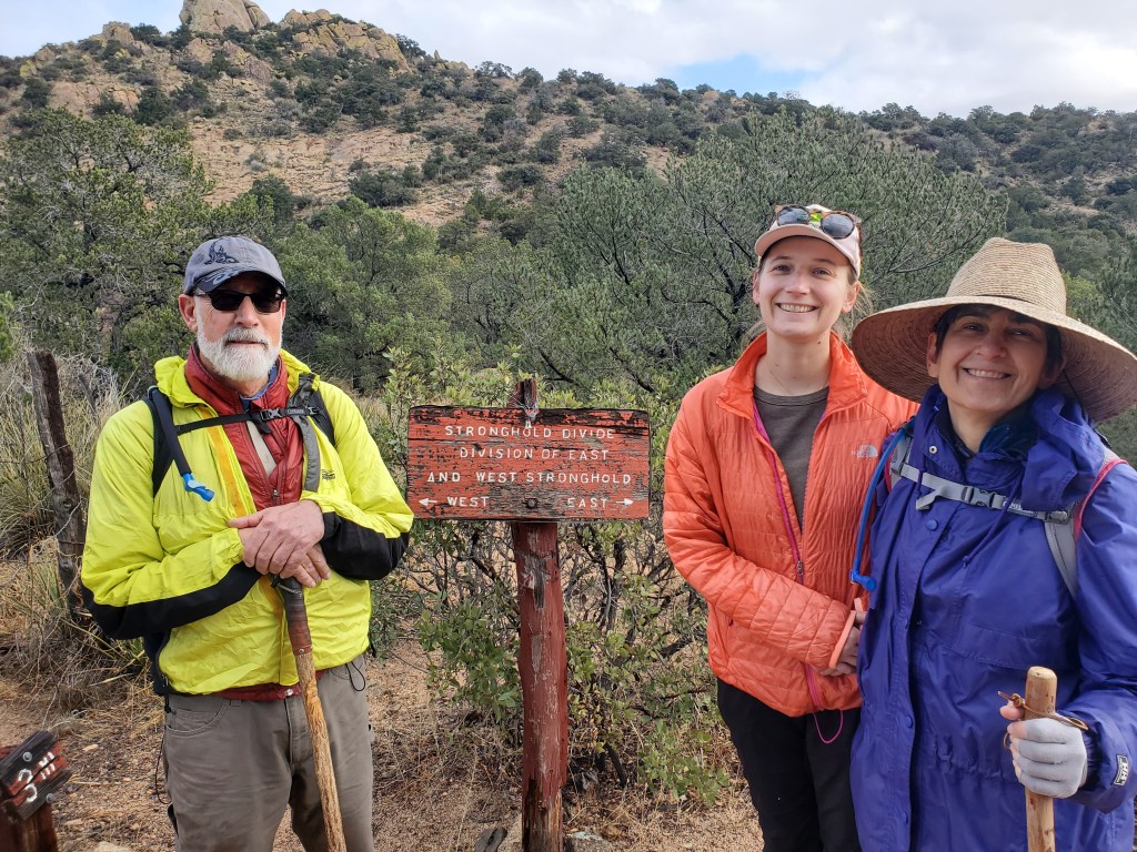 About halfway through our stay in Cochise, Whitney’s aunt and uncle, Eve and Steve, came down to pay us a visit. We met them on the East side of the Stronghold for a hike and picnic lunch. After a bumpy and fun ride through the mountains, we arrived at the Cochise Stronghold Campground. The mountains around us were socked in with clouds, and snow fell. We were really getting the whole enchilada when it came to winter weather in Southern AZ.