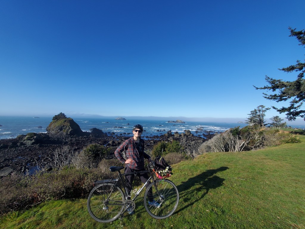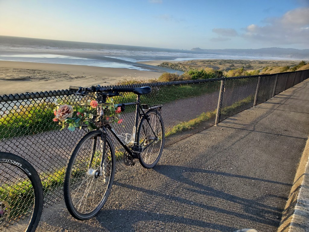 In the meantime, we went for one of the best bike rides we have ever been on. With Dottie running alongside me and Whitney following, we headed straight for the coast. The craggy cliffsides of Crescent City were stunning. The morning started off foggy, but eventually, the marine layer burned off and we were in full sun. We had a picnic lunch in a super scenic spot, loafed around in the sun, and went for a beer at a local brewery. Originally we were bummed that we needed to invest the time and money into replacing the radiator. But with a day like that, our frustration promptly melted away.